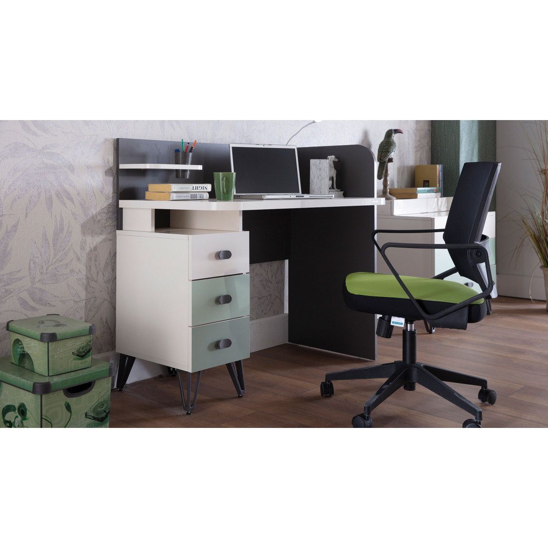 ВЕРХНИЙ ЯЩИК ЦВЕТА СЛОНОВОЙ КОСТИ, СРЕДНИЙ ЯЩИК СВЕТЛО-ЗЕЛЕНЫЙ,НИЖНИЙ ЯЩИК ТЕМНО-ЗЕЛЕНЫЙ.