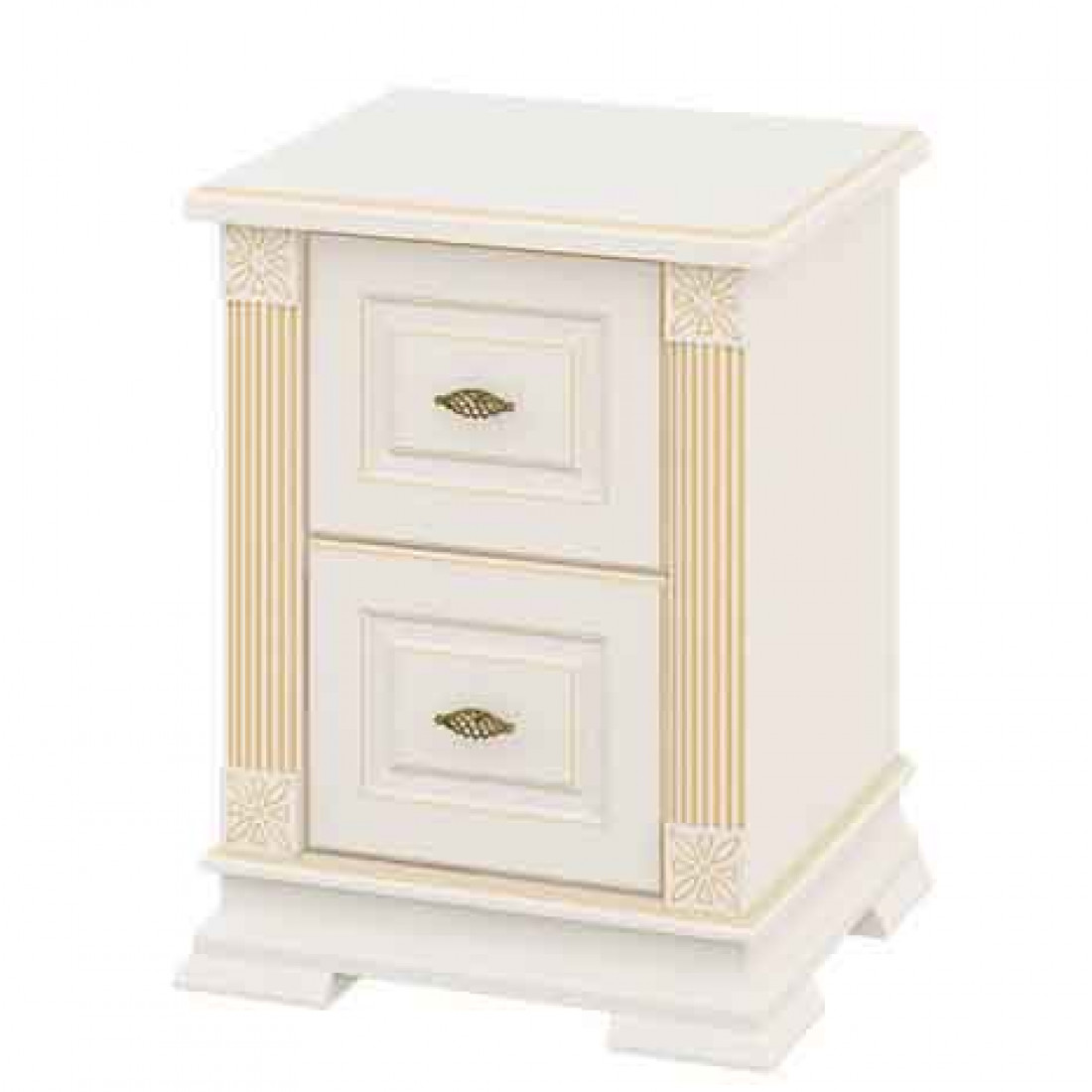 Тумба прикроватная МН-222-07 новой коллекции Афина от Мебель-Неман выполнена в цвете "крем с золотой патиной". Оснащена двумя выкатными ящиками.